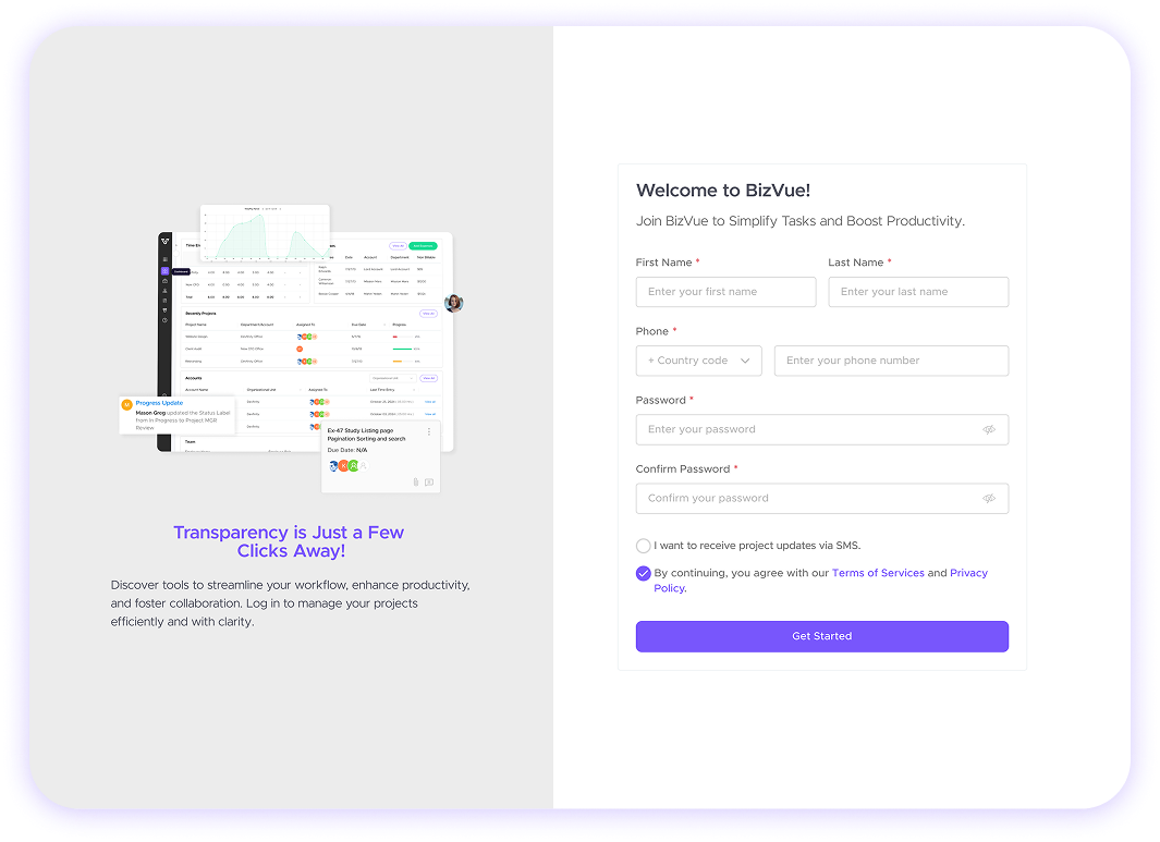 BizVue keeps teams and clients connected with shared access and daily updates. With mobile apps for