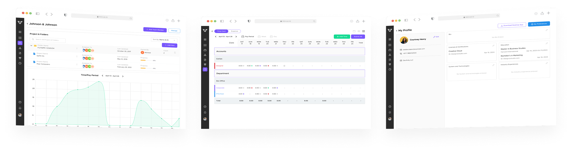 Log hours quickly and accurately with BizVue’s intuitive time entry and punch clock features. Gain full visibility into how work is spent across clients, projects, and departments.