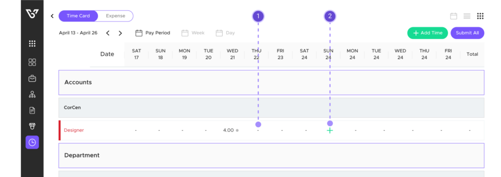 - Account Time and Department Time Entries require a project for time entry.